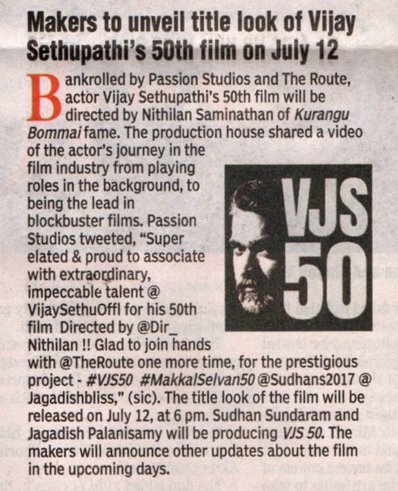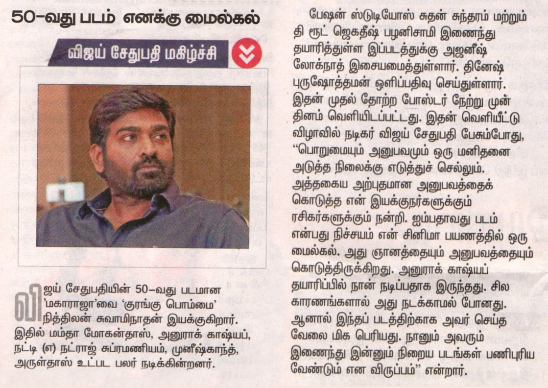 Vijay Sethupathi must be commended for his bold decision to play a negative character even though other movies in which he has played the lead role are due for release soon. (More...)