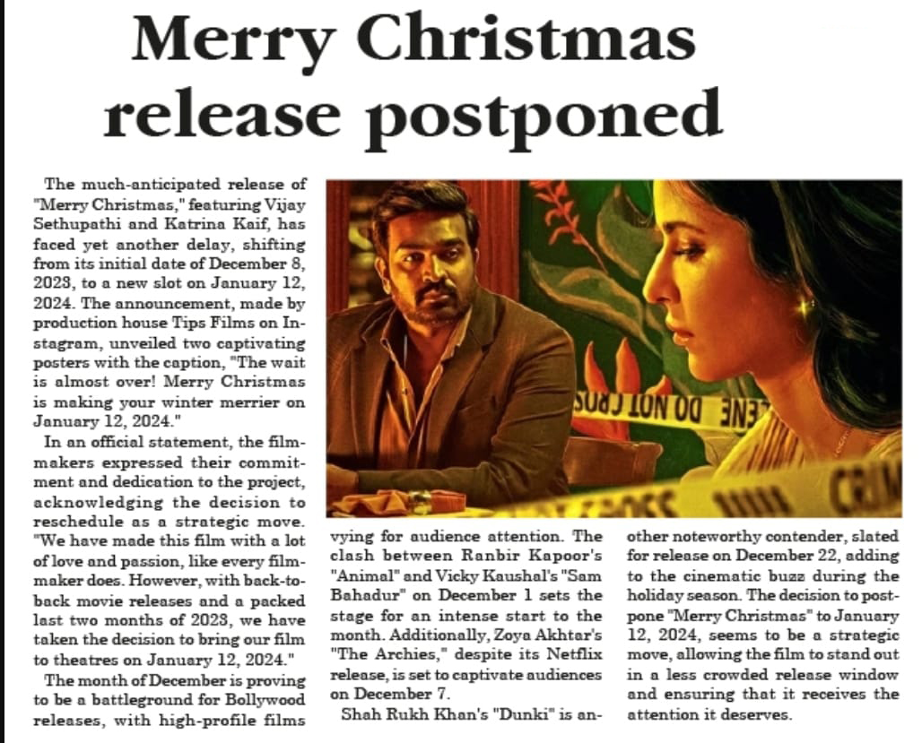 The project marks Katrina Kaif and Vijay Sethupathi's first film together New Delhi: If you are also waiting for Katrina Kaif and Vijay Sethupathi's film Merry Christmas to release this year, we have an update for you. The Sriram Raghavan directorial will now open in theatres next year. Yes, yes, we know that there were reports about the film releasing in winter this year but “but there is a twist” now. Moreover, the makers have not revealed the exact date for release yet. Katrina and Vijay, on Saturday, announced the latest update on their film.