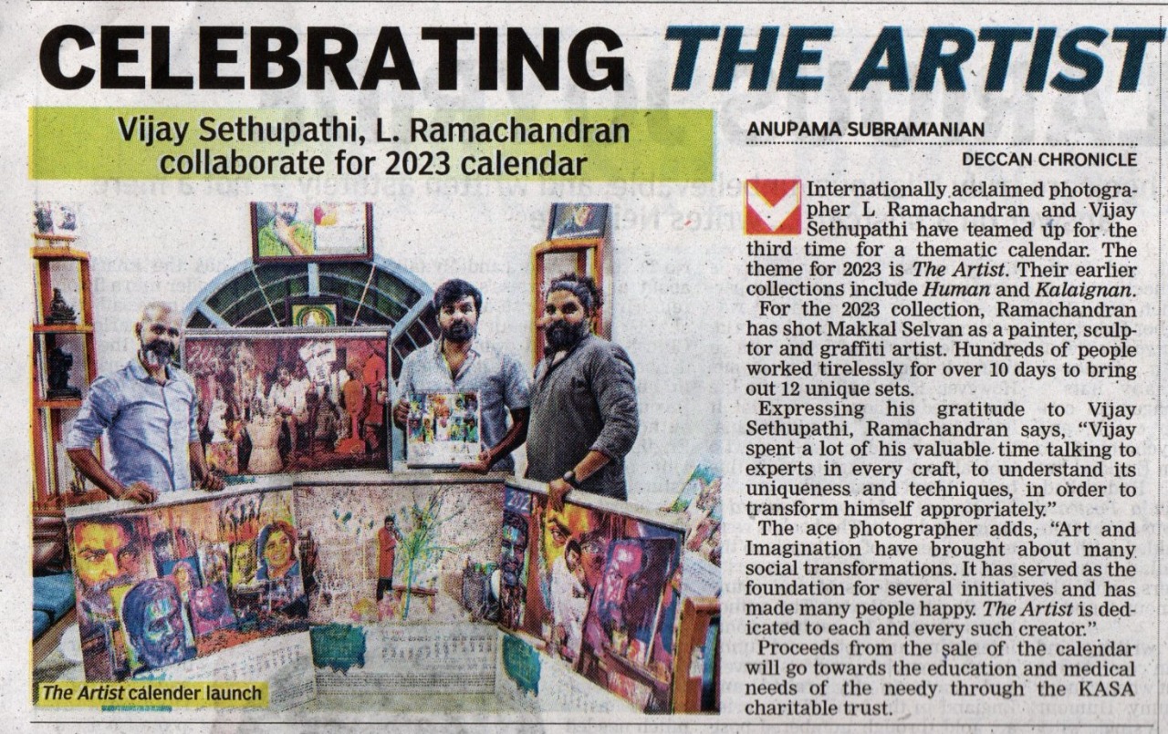 Internationally acclaimed photographer L Ramachandran usually picks a unique theme every year, and makes it sparkle through his stylised approach thus producing images with a cosmopolitan touch, which he then transforms into monthly calendars. Earlier, L Ramachandran and Vijay Sethupathi had produced collections titled ‘Human’ and ‘Kalaignan’. And, this time, L Ramachandran is on a hat-trick, portraying Vijay Sethupathi on a creative pursuit titled ‘The Artist’, which is the theme for the 2023 calendar.