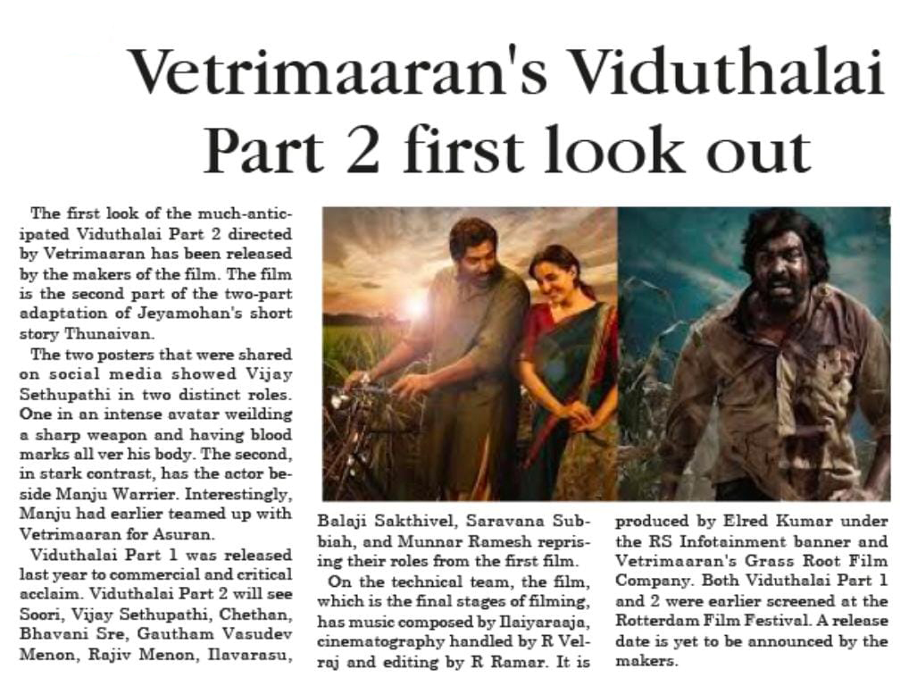 Vetri Maaran is one of the Tamil directors, who has been impressing fans with their unique style of filmmaking, and he is next directing 'Viduthalai'. The film is based on the novel Thunaivan written by Jeyamohan, and has Soori and Vijay Sethupathi in the main roles. Vetri Maaran has reportedly wrapped up the shoot of 'Viduthalai'. The shooting began in 2020, and the director has been filming for the film steadily across locations in Tamil Nadu. Due to the extended version of the story, 'Viduthalai' has been planned to be made in two parts, and the shooting for both parts has happened to wrap up on Tuesday.