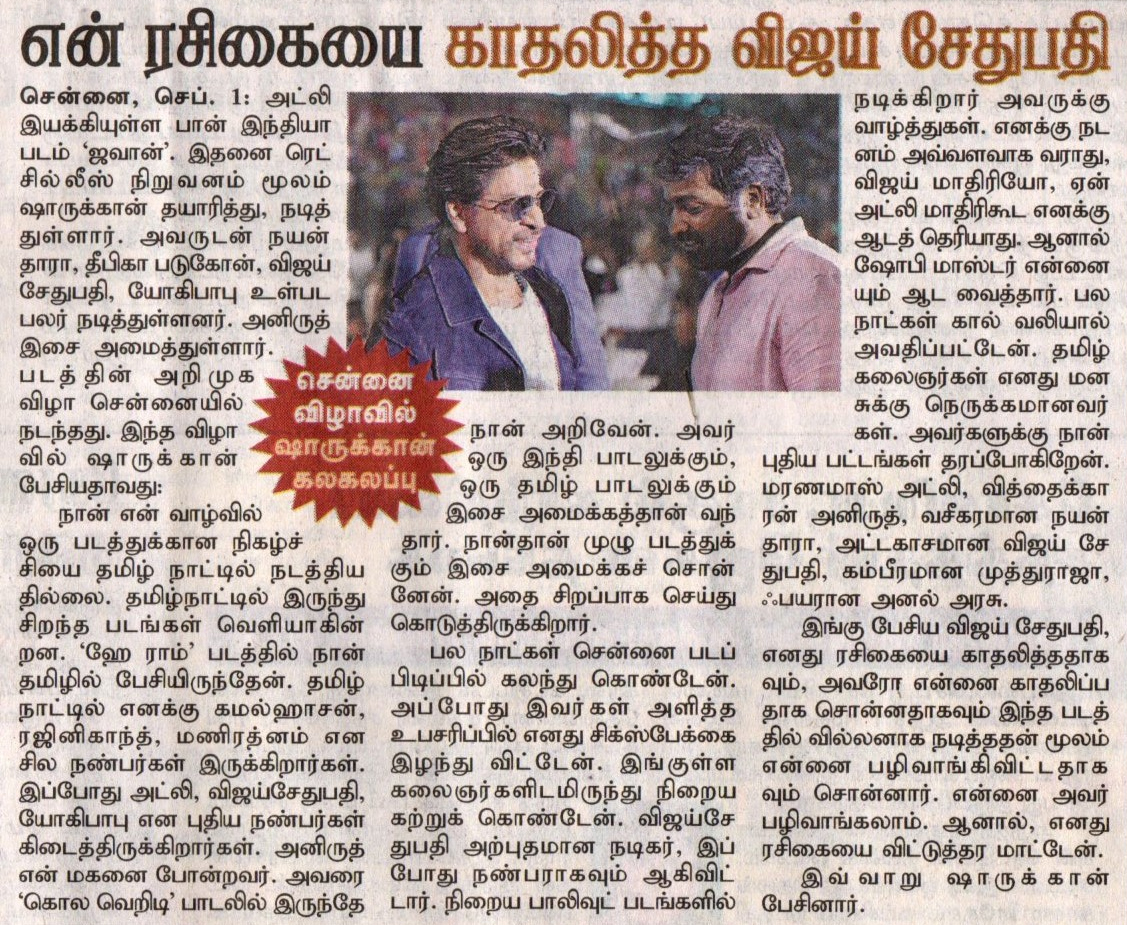 Directed by Atlee, Jawan is an high-octane action thriller starring SRK, Nayanthara, Vijay Sethupathi, Sanya Malhotra and others. Deepika Padukone has a special appearance in the film. Anirudh Ravichander has composed the music. Vijay Sethupathi made his Bollywood debut in the Raj & DK web series Farzi. He also appeared in the Santosh Sivan-directed film Mumbaikar. He stars alongside Katrina Kaif in Sriram Raghavan’s Hindi-Tamil bilingual Merry Christmas.